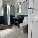 Vissa rum har ett delat badrum utrustat med toalettartiklar och badrockar.